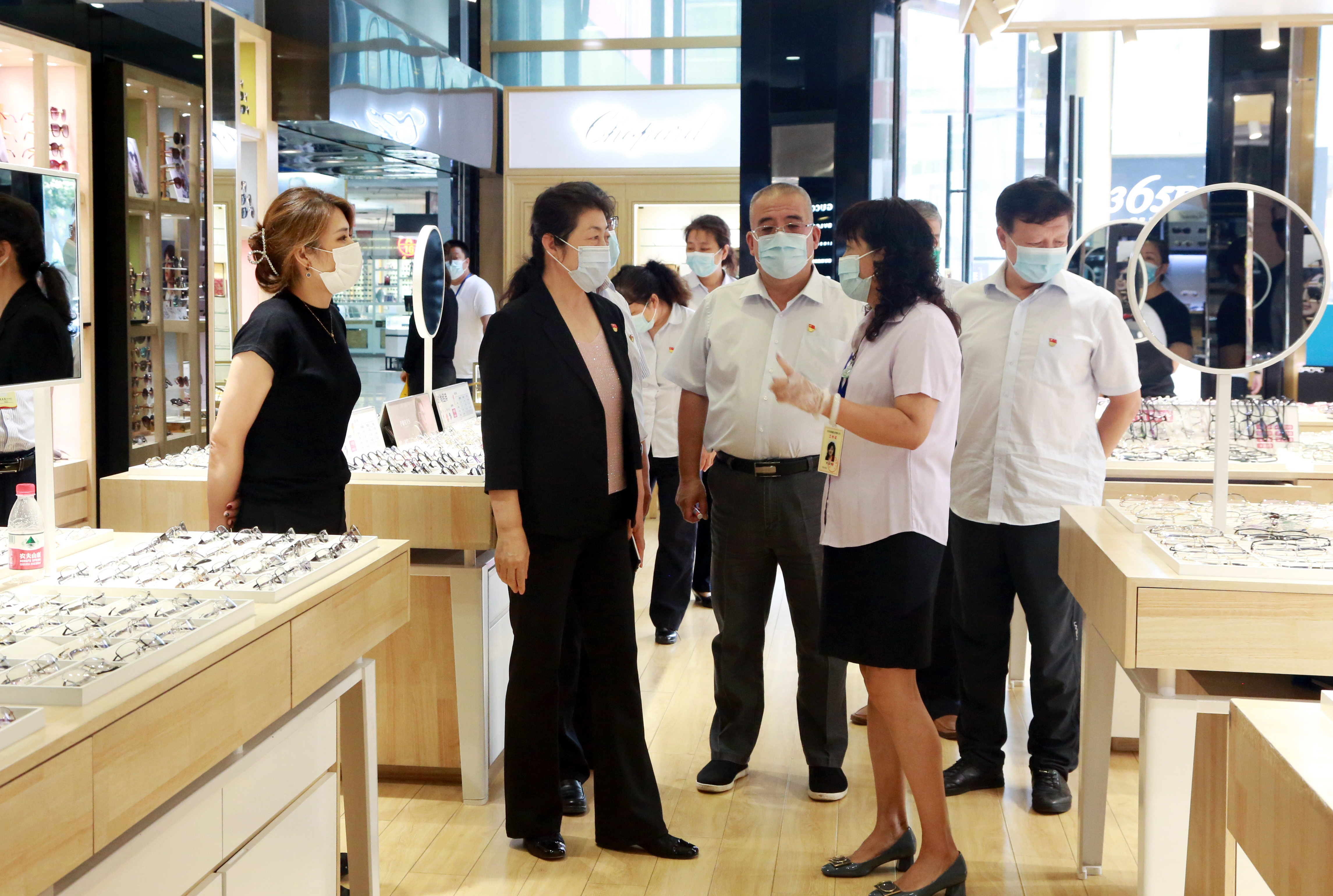 8月12日,一輕控股公司黨委副書記、工會主席洪艷華,工會副主席張志忠到北玻集團公司所屬眼鏡城市場就進一步落實落細各項疫情防控措施開展檢查。